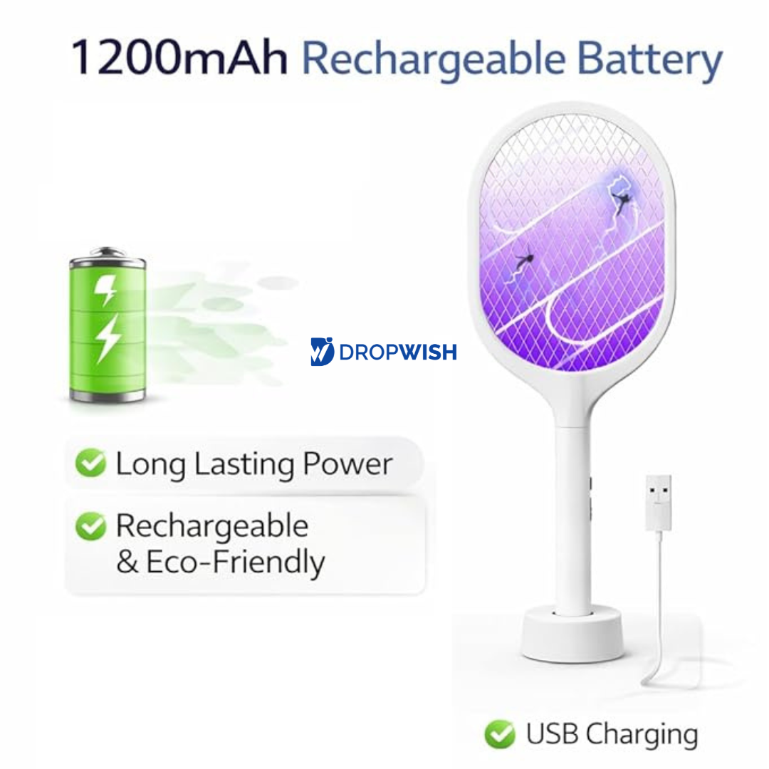 Functions as a powerful mosquito bat for instant swatting and also as an automatic UV mosquito killer lamp for continuous protection.