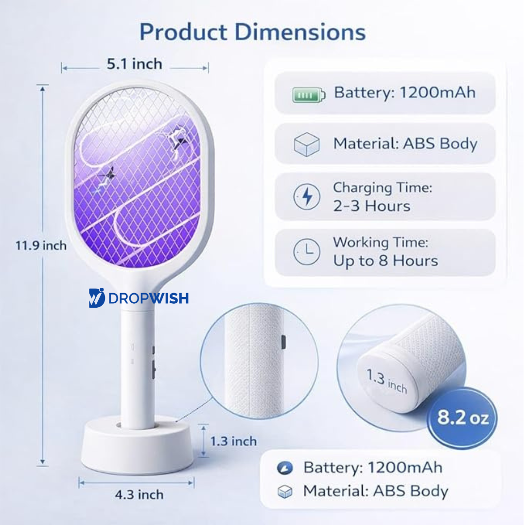 Enjoy peaceful, mosquito-free surroundings with the DW™ Mosquito Racket Lamp—a smart 2-in-1 solution that works both as a manual mosquito racket and an automatic UV mosquito killer lamp. Designed for convenience, safety, and efficiency, it helps protect your home day and night.